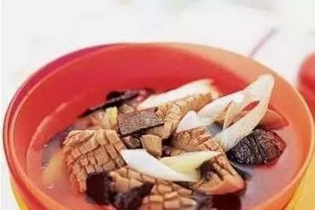 黄豆煲猪脚。材料:猪脚500克、盐、白酒、黄豆、鸡精适量
